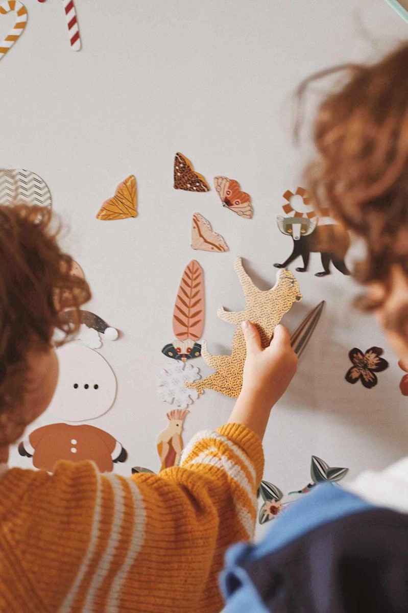 Super cool and original magnetic stickers but especially the magnetic wallpaper is our favorite. We used it as a splash wall in the kitchen. Perfect place to collect cards, bills and important things. We also hung a piece in the playcorner. Kids are also huge fans!