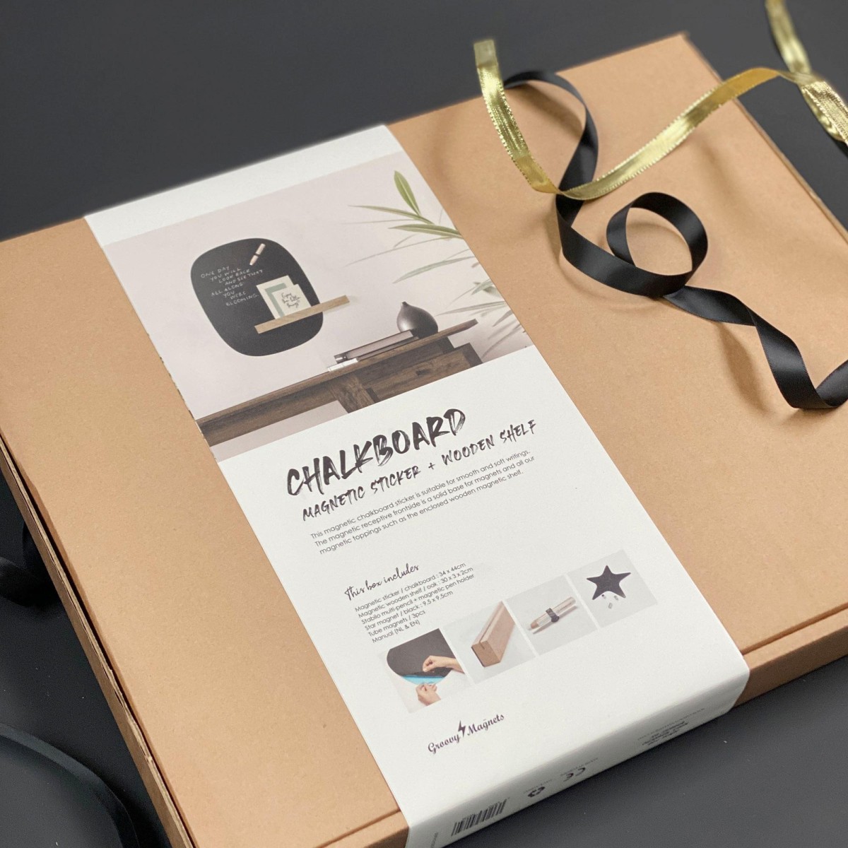 Black box Groovy Magnets en coffret cadeau - Sticker mural magnétique et inscriptible avec topping STARTER KIT